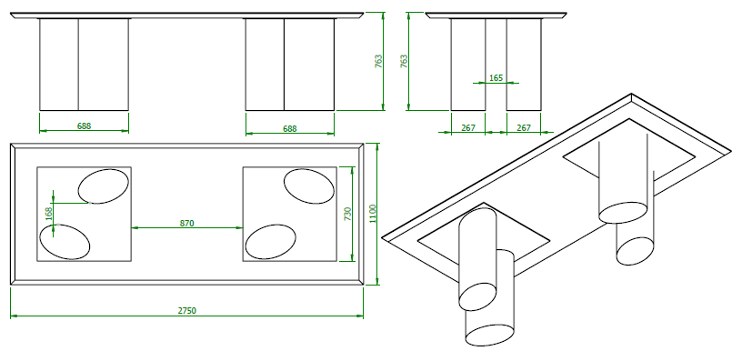 TOP MATERIALS: 5mm sintered quartz + 38mm laquered wood-based material